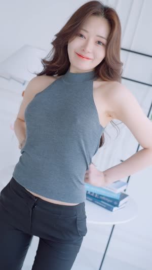 한갱 오피스룩 단추푼 흰셔츠 숙인 가슴골 검스
