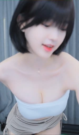 문월 튜브탑 베이지색 핫팬츠 밑캠 숙인 가슴골