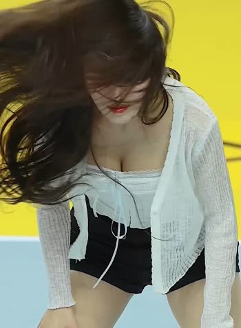 강지은 치어리더 헤드벵잉 숙인 가슴골