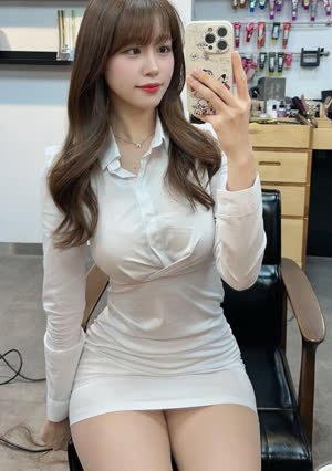 한갱 오피스룩 단추푼 흰셔츠 숙인 가슴골 검스