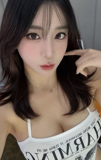 모델 미유 흰 끈나시 가슴골