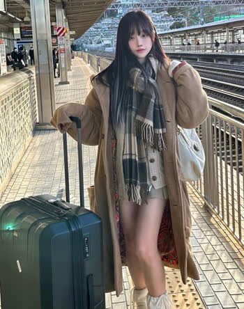 아이브 이서 한겨울 패션 바람에 펄럭이는 치마 흰 속바…