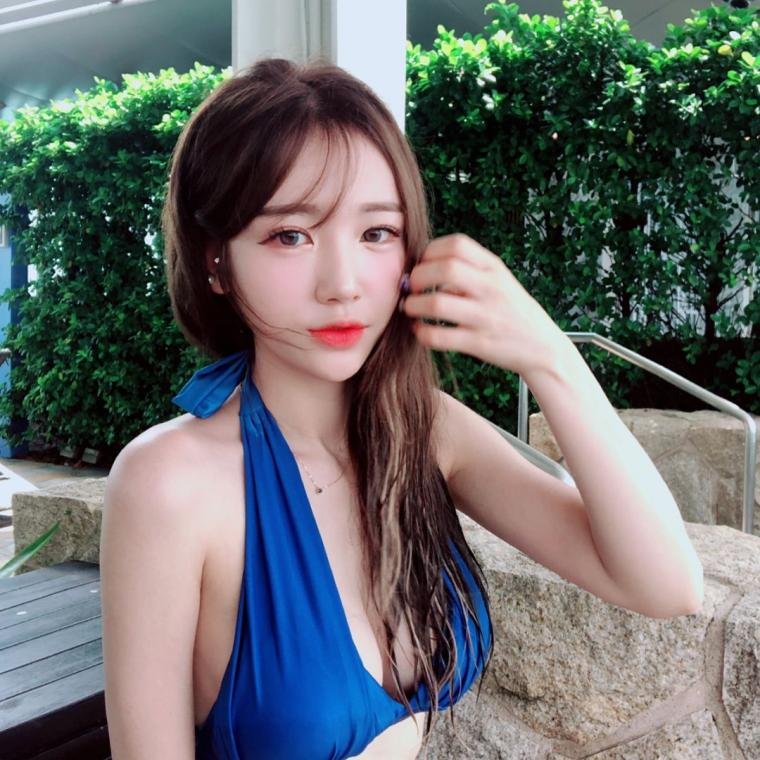 모델 엘라 화보 촬영 핑크 비키니 가슴골